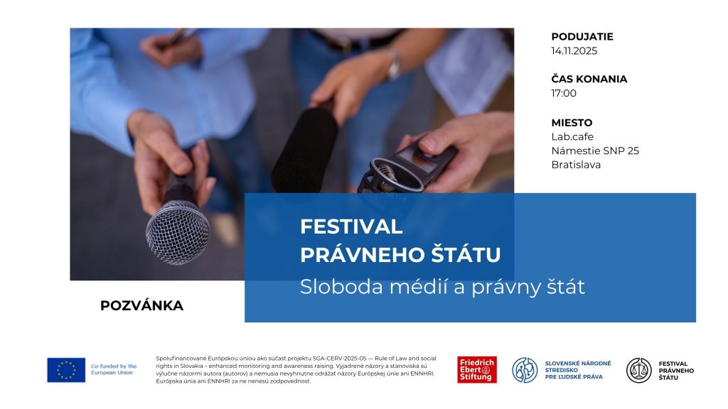 Spolufinancované Európskou úniou ako súčasť projektu SGA-CERV-2025-05 — Rule of Law and social rights in Slovakia – enhanced monitoring and awareness raising. Vyjadrené názory a stanoviská sú výlučne názormi autora (autorov) a nemusia nevyhnutne odrážať názory Európskej únie ani ENNHRI. Európska únia ani ENNHRI za ne nenesú zodpovednosť.