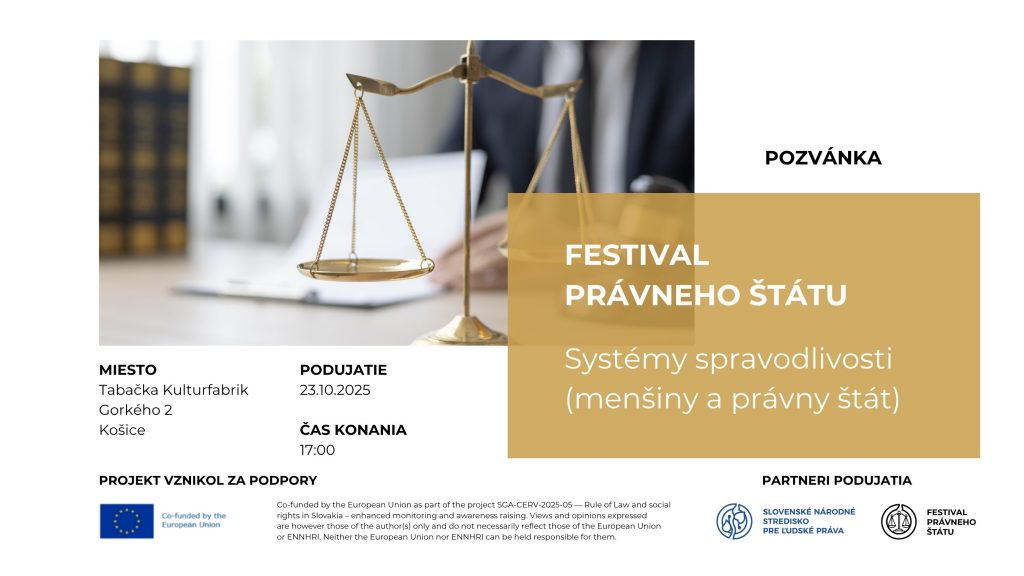 Spolufinancované Európskou úniou ako súčasť projektu SGA-CERV-2025-05 — Rule of Law and social rights in Slovakia – enhanced monitoring and awareness raising. Vyjadrené názory a stanoviská sú výlučne názormi autora (autorov) a nemusia nevyhnutne odrážať názory Európskej únie ani ENNHRI. Európska únia ani ENNHRI za ne nenesú zodpovednosť.